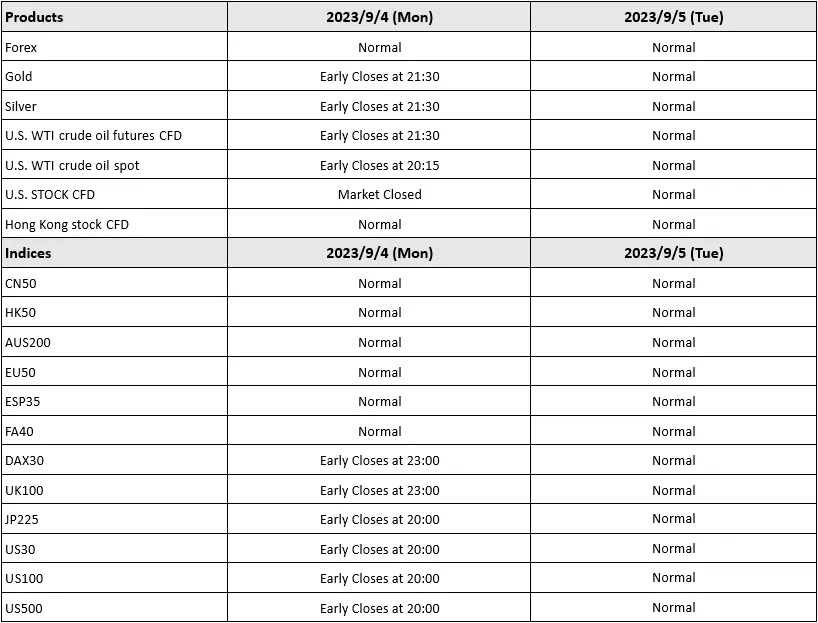Xin lưu ý rằng lịch giao dịch trong kỳ nghỉ lễ của thị trường vào tháng 8 năm 2023, vui lòng xem lịch giao dịch như bên dưới.